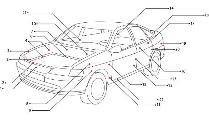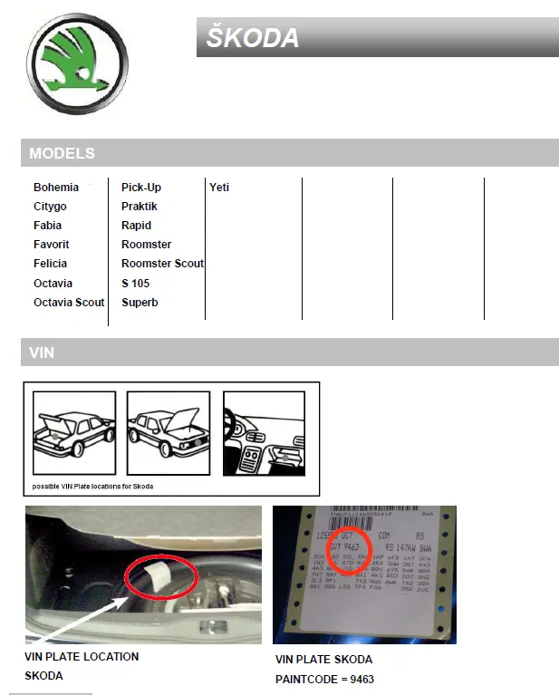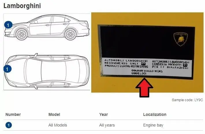 За да можете да поръчате автобоя трябва да знаете цветовия код на вашия автомобил. Цветовият код може да се види на няколко места от вашия автомобил – в зависимост от марката. От чертежа и списъка по-долу можете лесно да намерите мястото на кода.