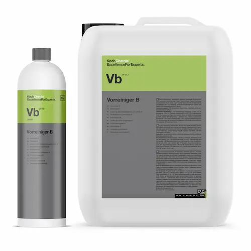 Силно концентриран, алкален почистващ препарат, без фосфати, за предварително измиване на автомобили, камиони и др.. Комплексните агенти, повърхностноактивни вещества и специални добавки, в състава, моментално разтварят дори най -упоритите полепвания по повърхността като: насекоми, екскременти от птици и други замърсявания от околната среда. Експресното действие на Vorreiniger B го прави идеално подходящ за бързо и качествено безконтактно измиване, под високо налягане на автомобили в автомивки с кратко време на реакция (например експресни автомивки). Специалните инхибитори на корозия са изключително щадящи към чувствителни компоненти, като например анодизиран алуминий и др.. Прeпаратът е подходящ за премахване на полимерни вакси. Продукт с бързо освобождаване съгласно австрийския стандарт ÖNORM 5106. VDA-съвместим клас А: време за реакция макс. 5 мин, макс. концентрация 1: 300 –