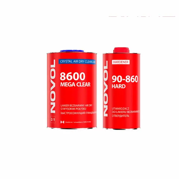 NOVOL N 8600 MEGA CLEAR е висококачествен HS безцветен лак AIR-DRY, предназначен за професионална употреба в автобояджийски сервизи и детайлинг центрове. Благодарение на бързосъхнещата си формула, лакът съхне при стайна температура, без необходимост от печене, което го прави идеален за бързи ремонти и натоварена сервизна среда.