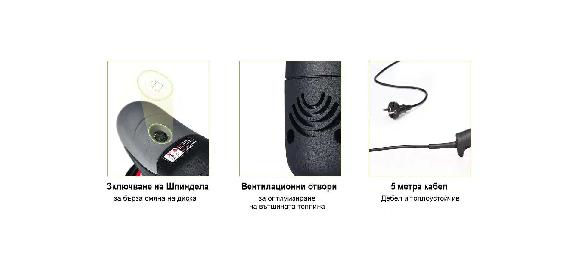 - Заключване на шпиндела за бърза смяна на оборотите.